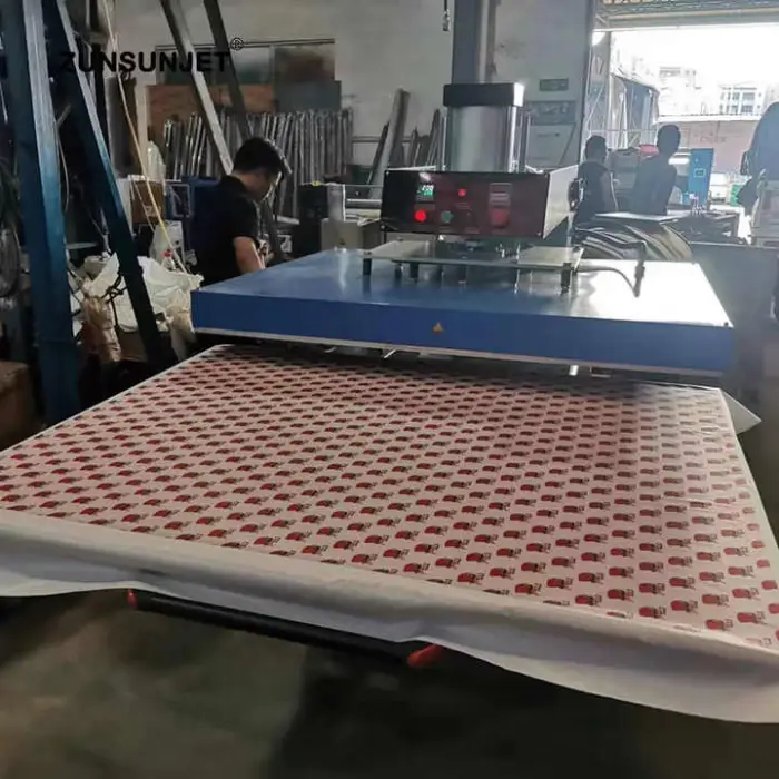 Yes, the machine provides adjustable temperature and pressure settings for precise control over the printing process.
