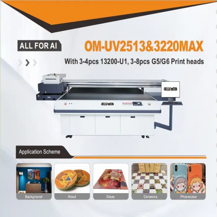 The Large Format UV 2513 printer can print on various materials including metal, glass, wood, plastic, and more, making it a versatile option for different applications.