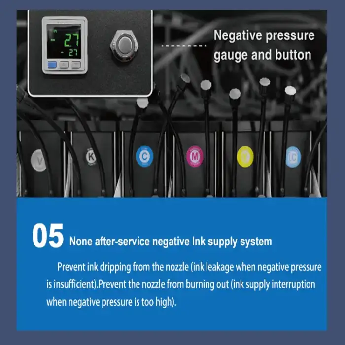The printer uses a 500ml per bottle ink supply system, allowing for efficient use of ink and minimizing the need for frequent refills.
