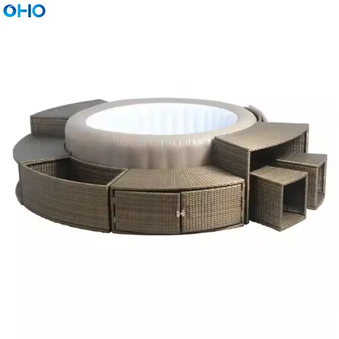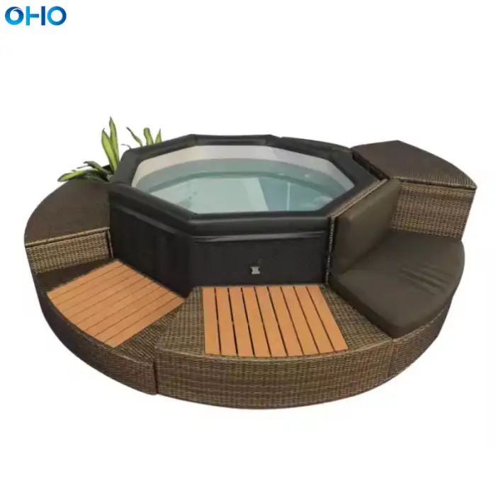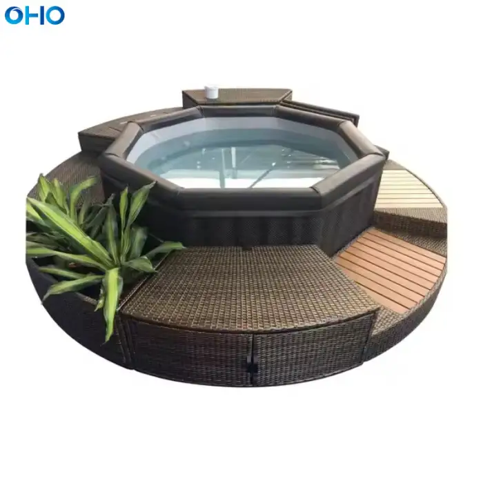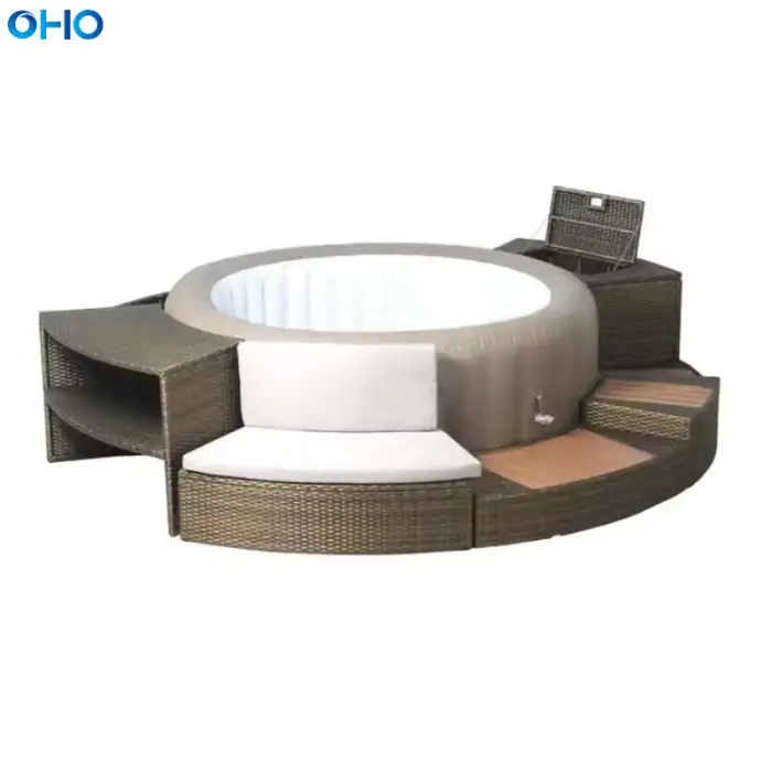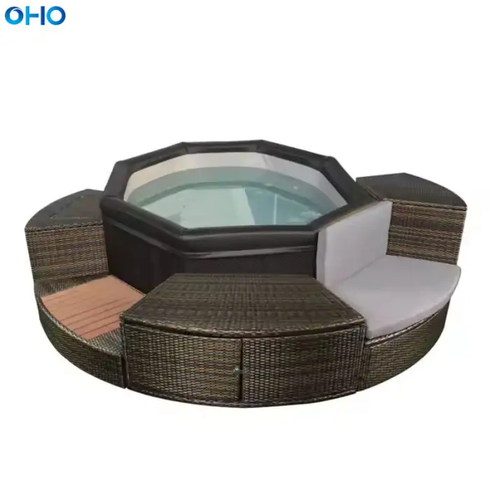 Large Garden Outdoor Tub Spa Set with PE Rattan Furniture Including Ice Bathtub Accessories