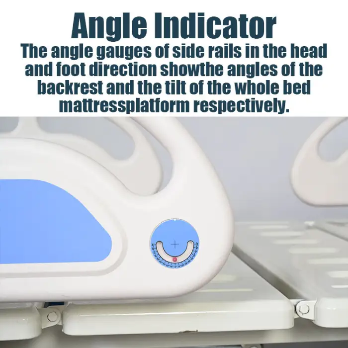 The bed features a manual adjustment mechanism that allows caregivers to easily change the position of the head panel for patient comfort.