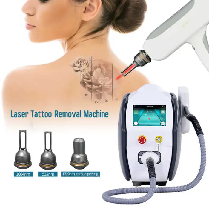 The machine is designed for removing unwanted tattoos and pigments while also providing skin rejuvenation, whitening, and effective acne treatment.