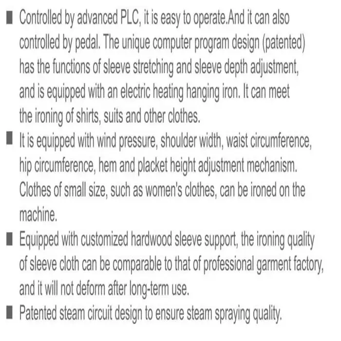 This equipment is ideal for hotels, factories, hospitals, laundries, and dry cleaning establishments for professional garment finishing.