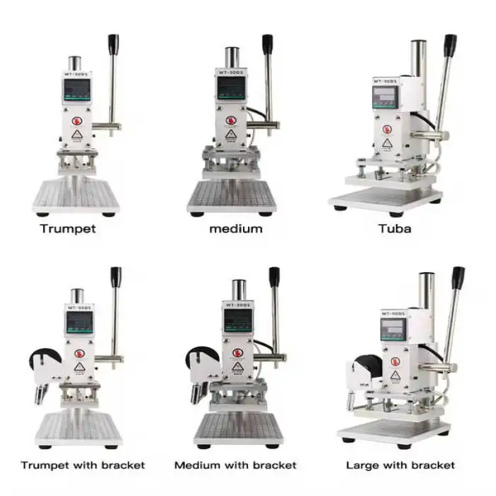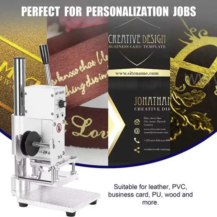 The machine is designed for small to medium stamping projects due to its heating size of 5 cm x 7 cm.
