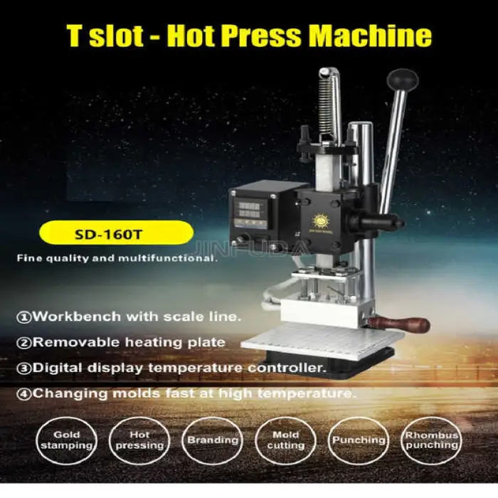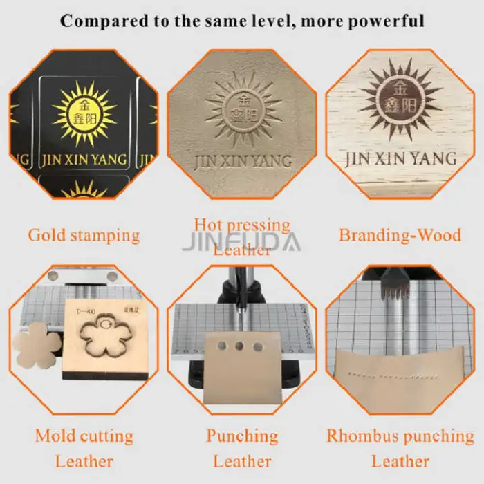 The Leather Logo Embossed Stamping Machine is available in a multicolor design.