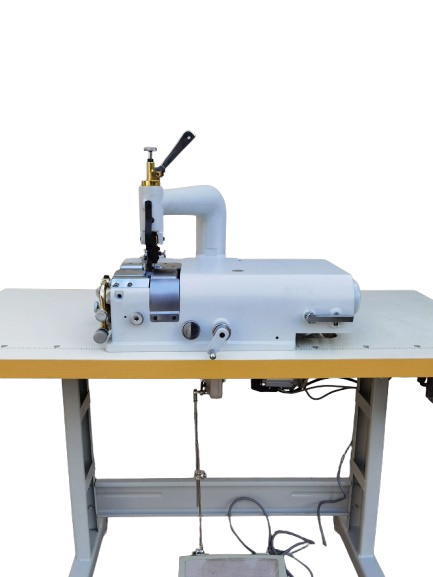 The Leather Skiving Machine Model QK-801 is designed to thin leather edges and surfaces, allowing for cleaner seams and improved finishing on leather products.