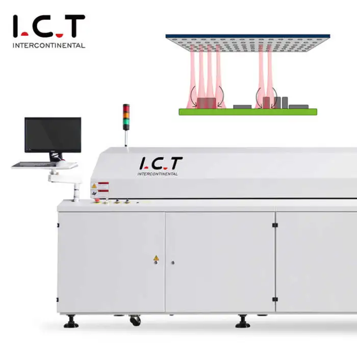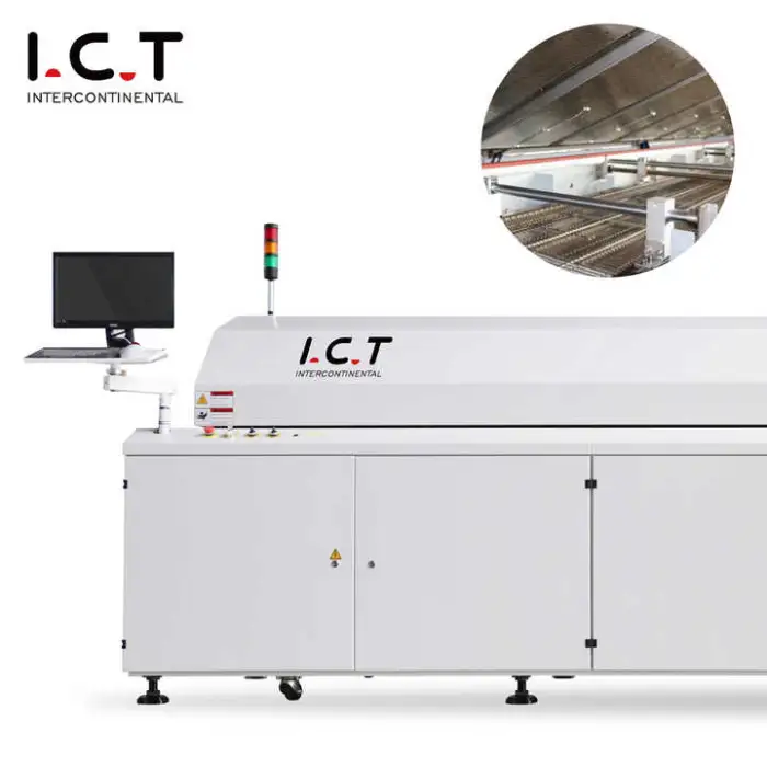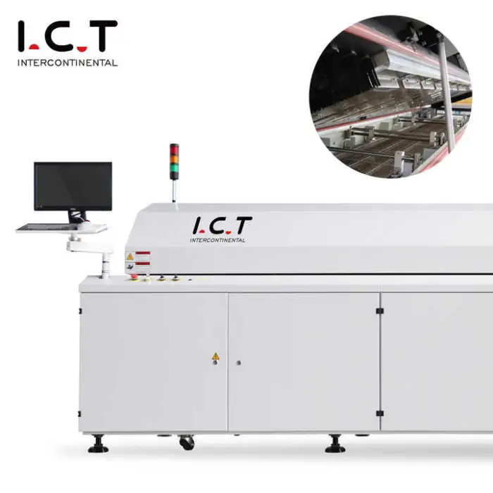 This is a reflow oven designed for PCB reflow soldering and LED assembly. It is used to thermally profile printed circuit boards to melt solder paste and form reliable solder joints for surface-mount components.