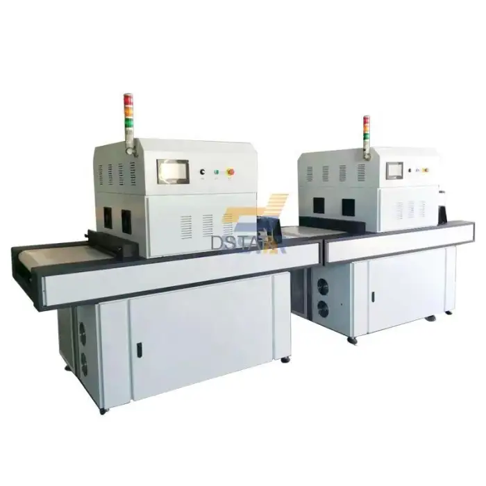 The machine features two lamps, each with a power of 2KW, specifically designed for curing inks.