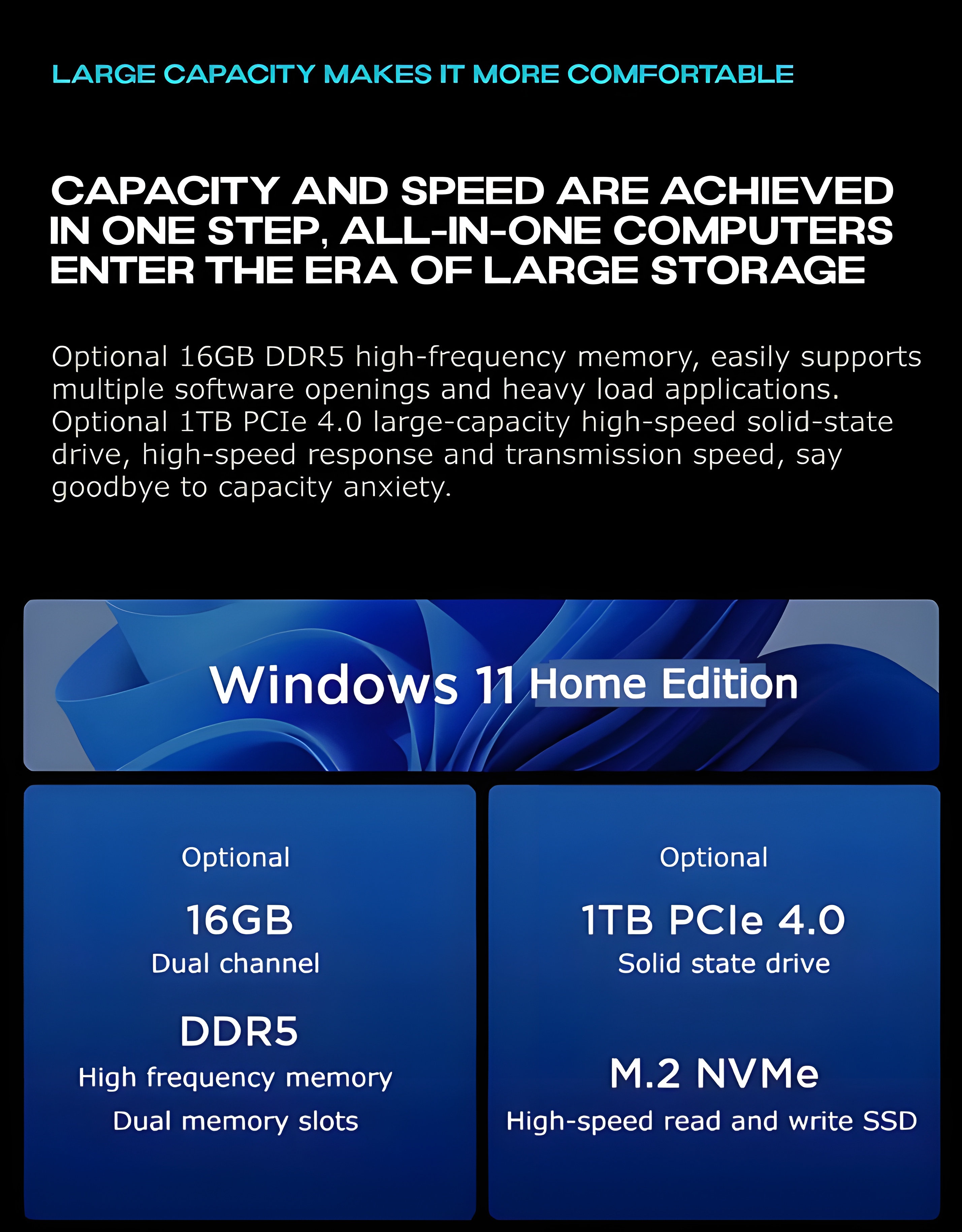 The Lenovo Xiaoxin 24 can be configured with up to 16GB of RAM, providing ample memory for efficient multitasking.