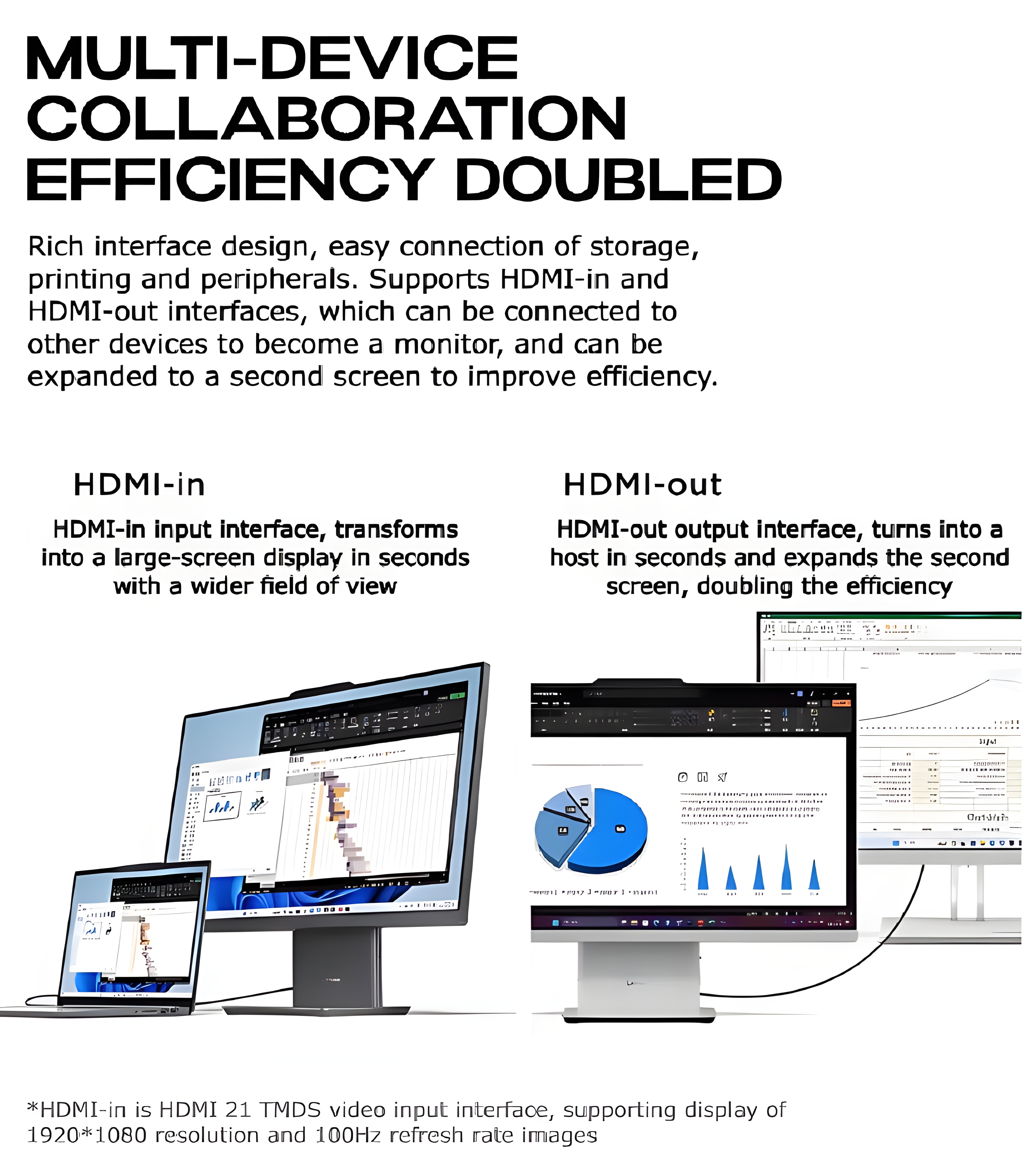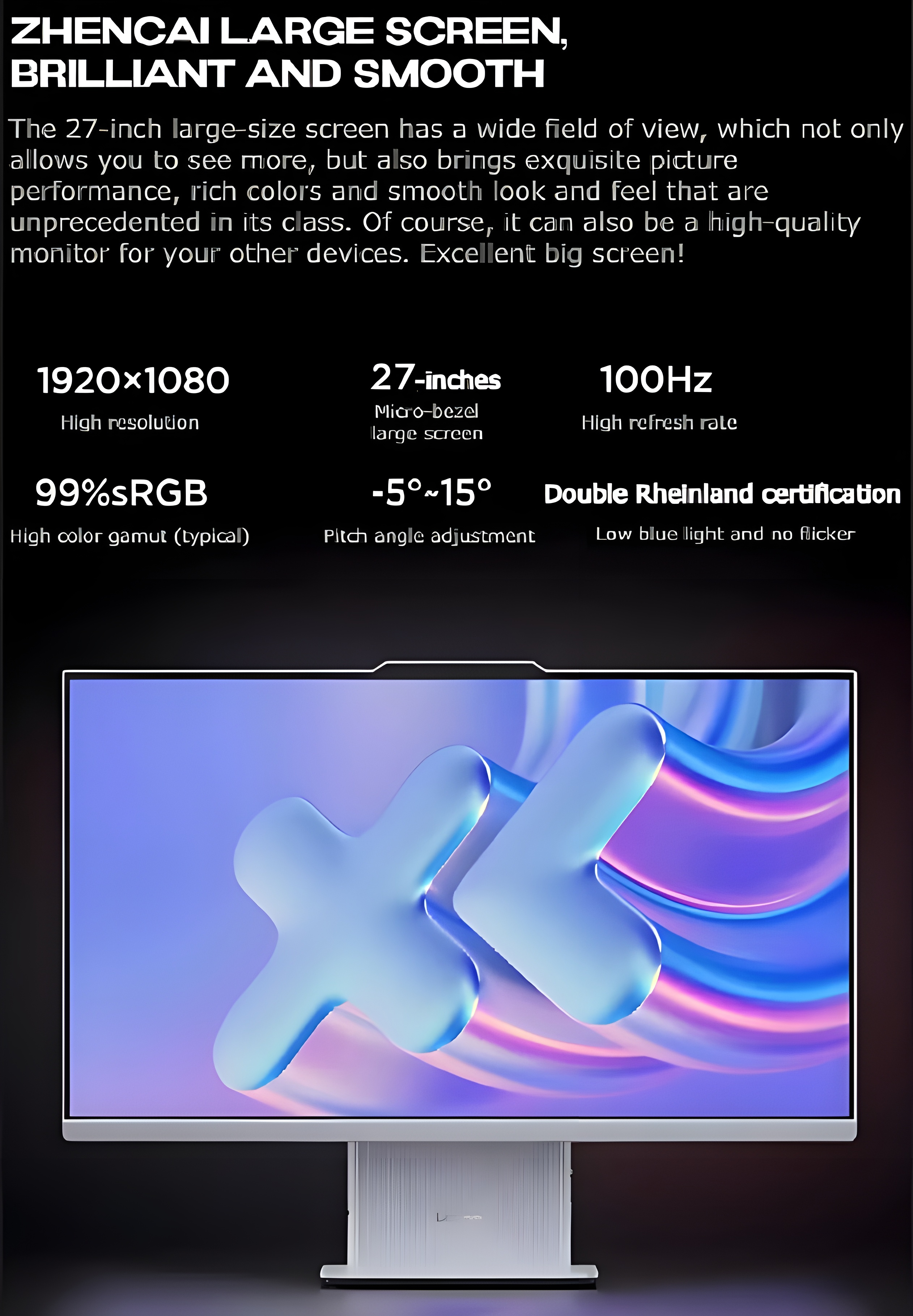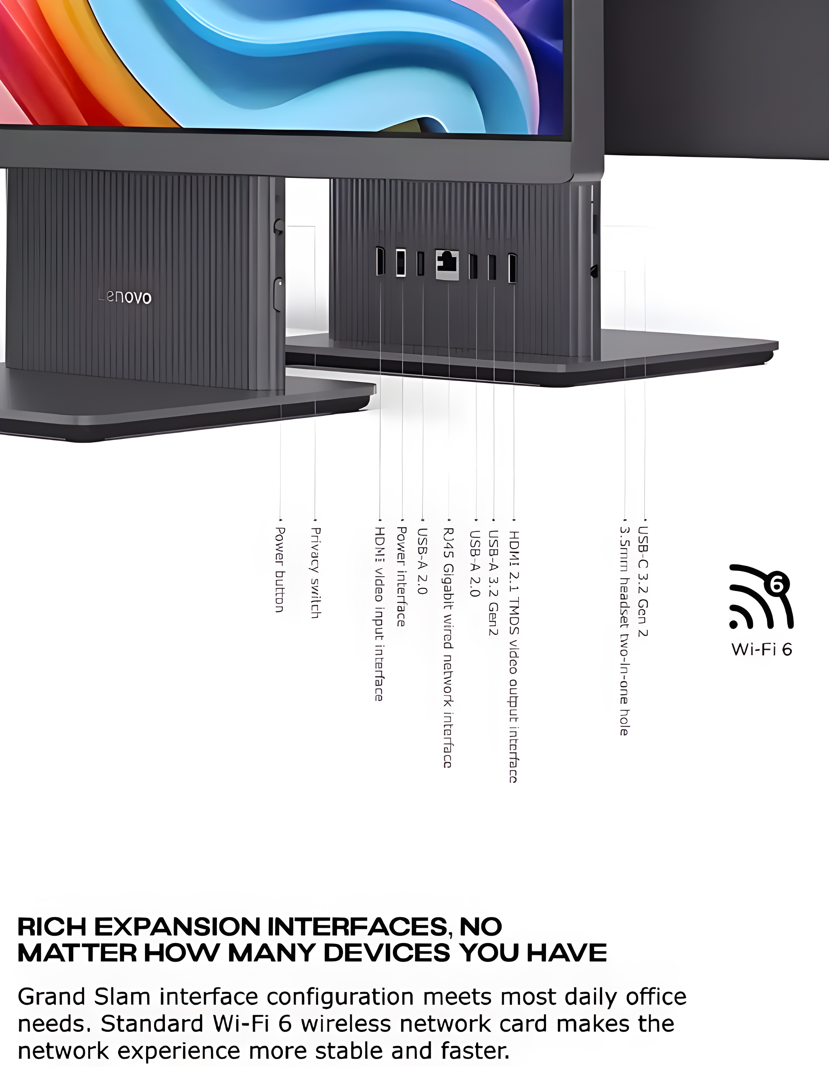 The Lenovo Xiaoxin 24 includes an adjustable screen to ensure comfort during extended use, allowing you to find the best viewing angle.