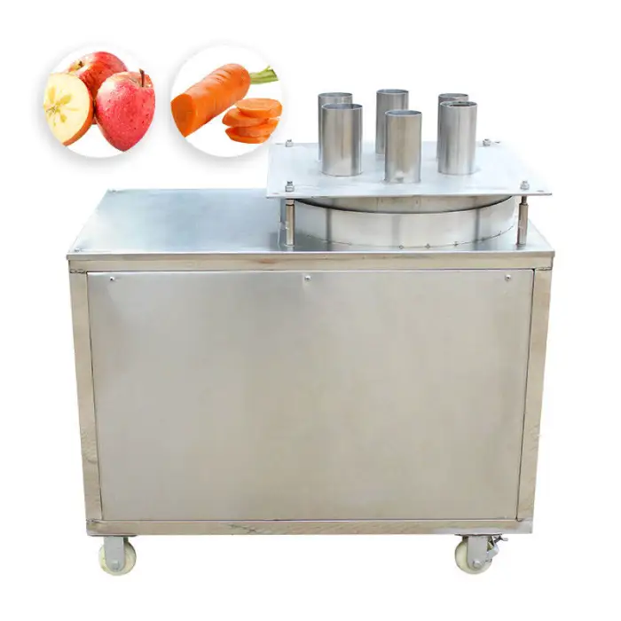 Key features include high efficiency for quick slicing and peeling, easy operation, durable stainless steel construction, and a compact design that fits well in any processing line.