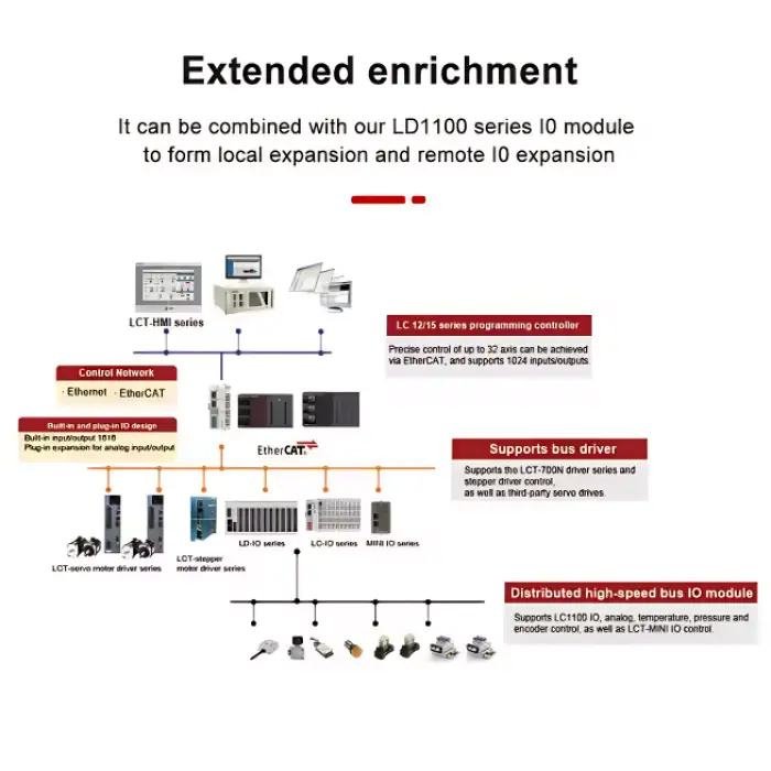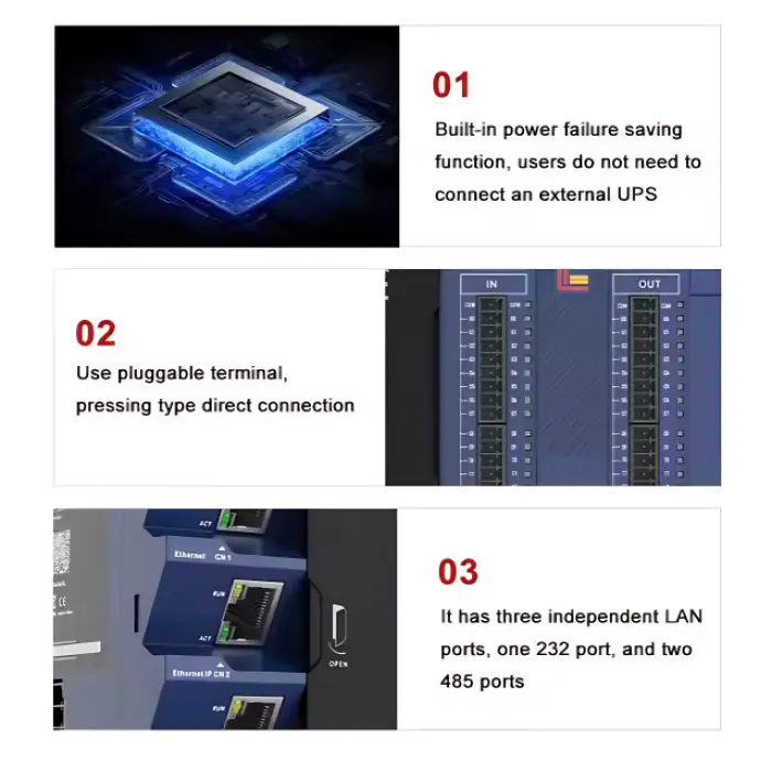 It supports Modbus, EtherCAT, and Ethernet for seamless integration with different automation systems.