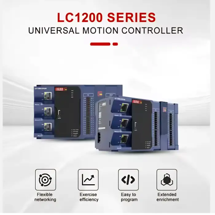 The PLC1204-CPU20TN features 1GB DDR3L RAM, 8GB eMMC storage, supports multiple communication interfaces including Modbus, EtherCAT, and Ethernet, offers 16 digital inputs and outputs, can control up to 4 tape axes, and has a compact design for easy installation.