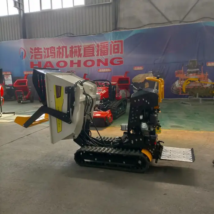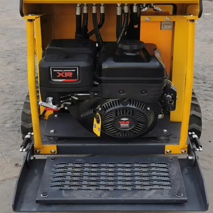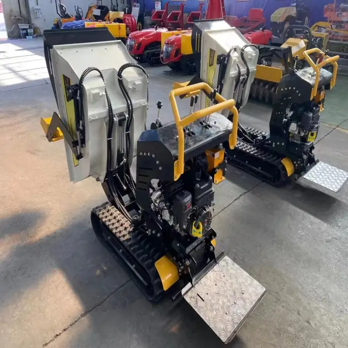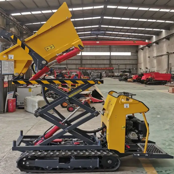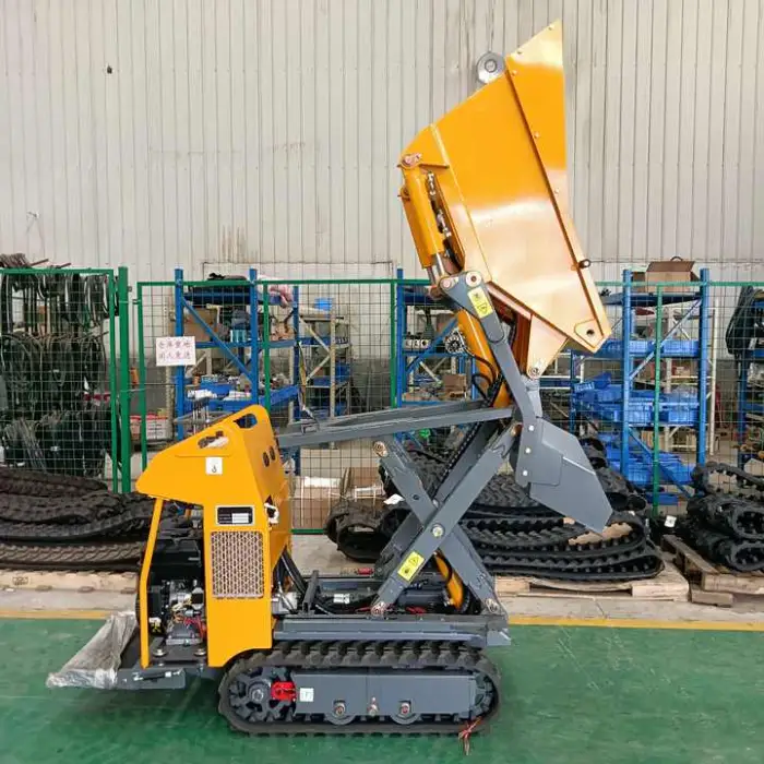 The mini dumper includes safety features such as a stable hydraulic system and durable components to ensure safe operation.