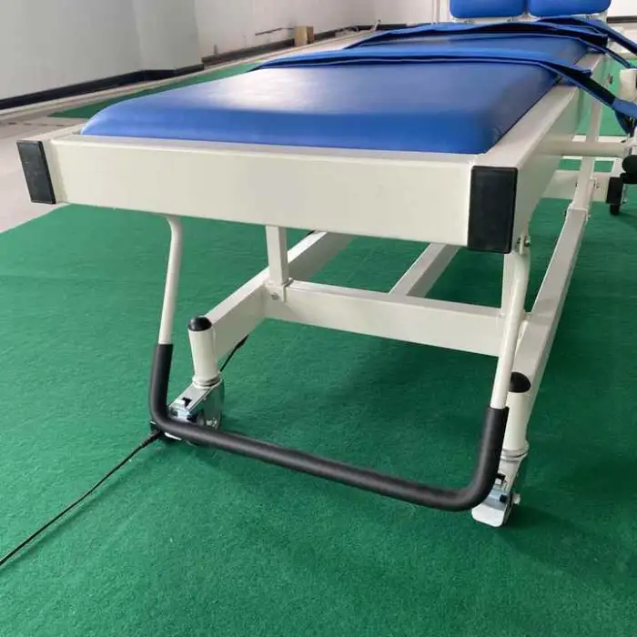 The adjustable tilt feature allows the table to be tilted at various angles to suit the rehabilitation needs of patients. It is operated by an electric power source, making it easy to adjust with minimal effort.