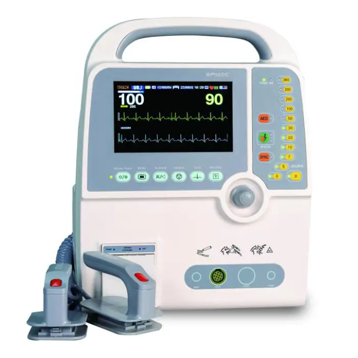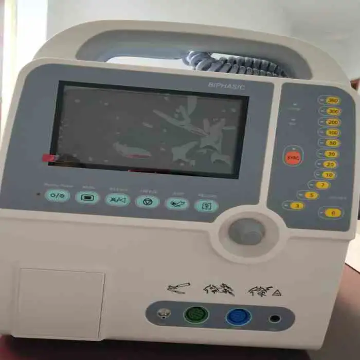 The Longermay Portable Defibrillator is used to provide emergency assistance during cardiac arrests. It delivers an electric shock to restore a normal heart rhythm, making it an essential first-aid device.