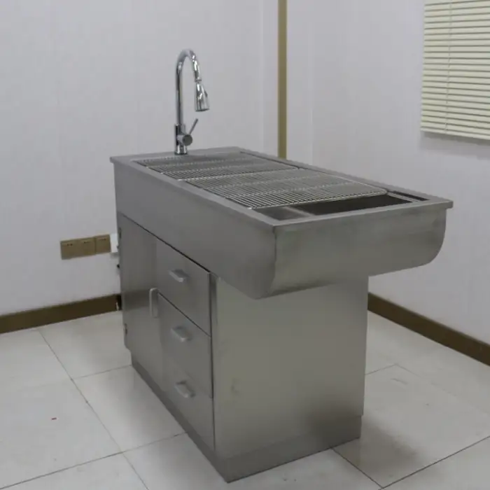 The table is designed primarily for indoor use (clinics, grooming salons, bathrooms). While stainless steel can resist corrosion, prolonged outdoor exposure to the elements is not recommended without protective measures.