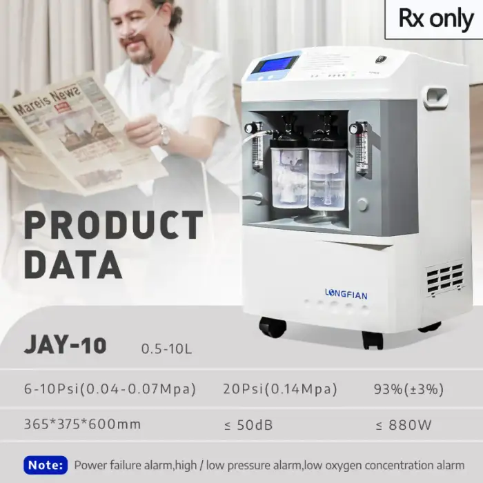 The LONGFIAN JAY-10 provides a maximum oxygen flow rate of 10 liters per minute, making it suitable for various patient needs.