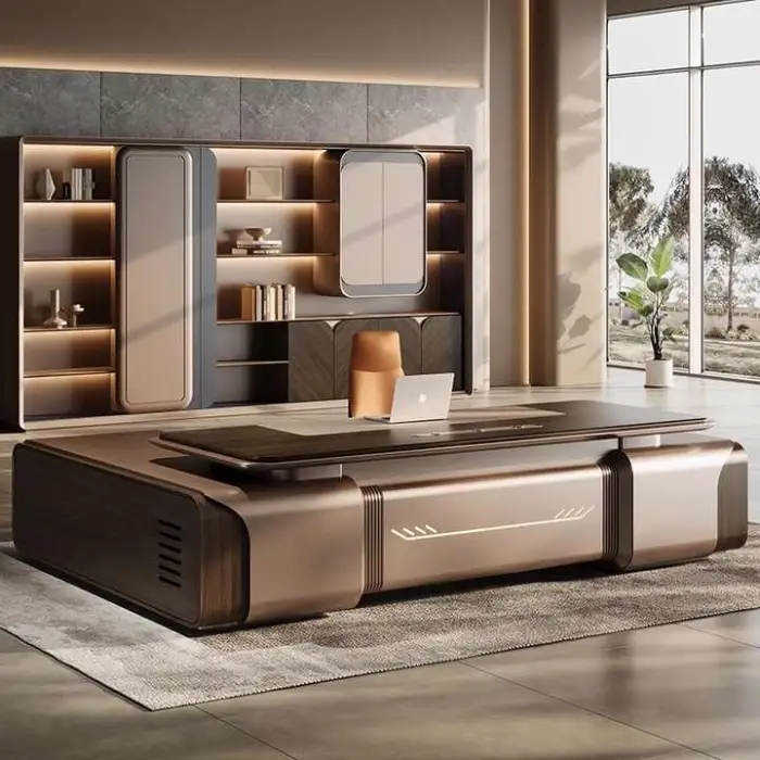 The desk features a modern style, perfect for enhancing the aesthetic of contemporary office settings.