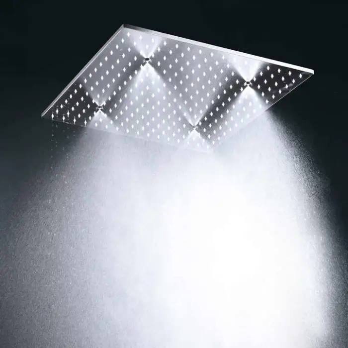 The LED lights change color based on the water temperature: Red indicates hot, Green indicates warm, and Blue indicates cold.