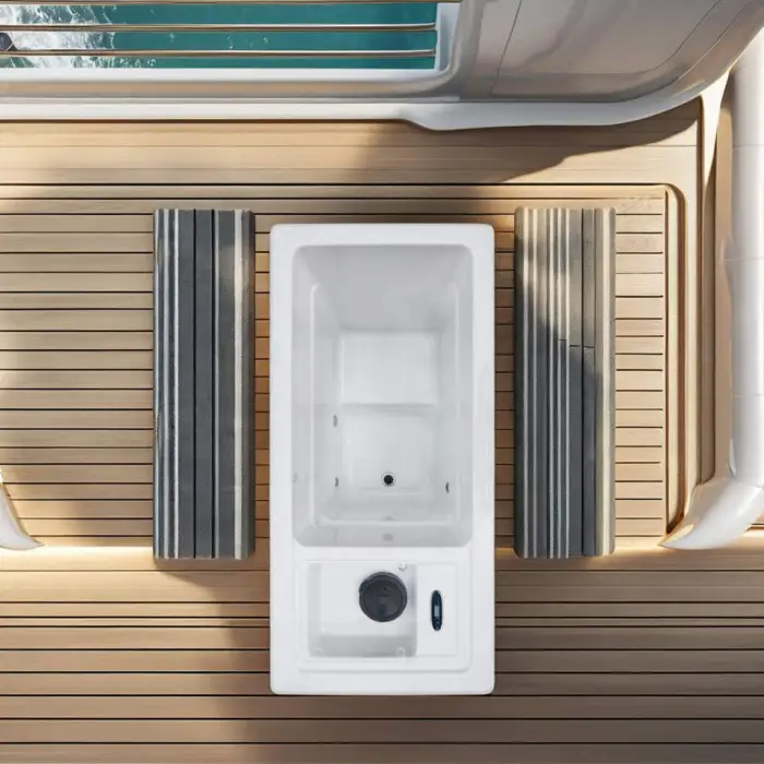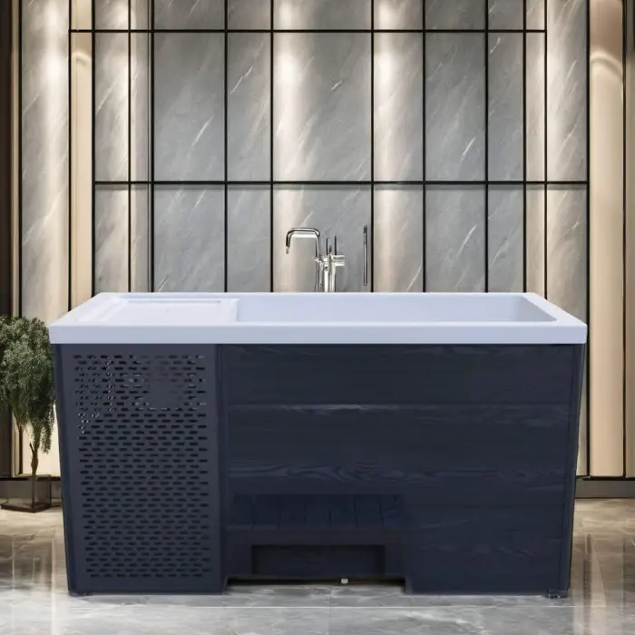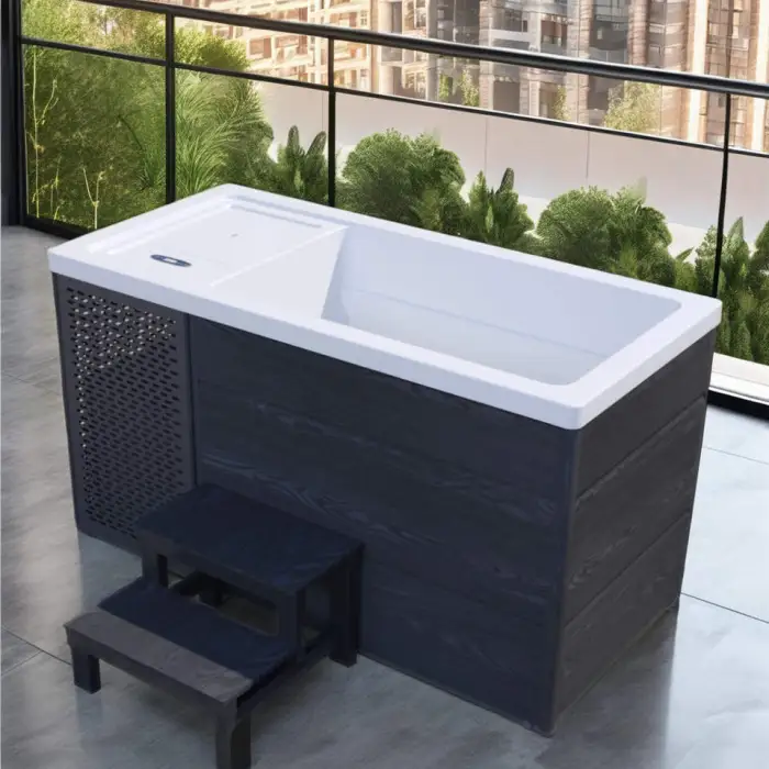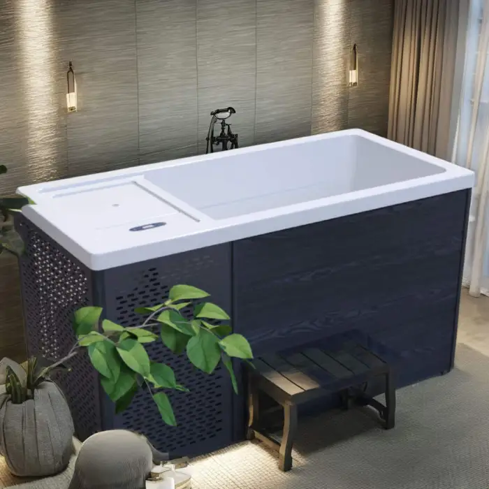 The bathtub is equipped with a water care sanitization system to maintain clean and safe water for your cold therapy sessions.