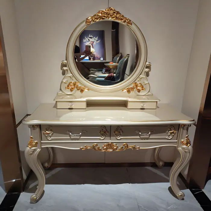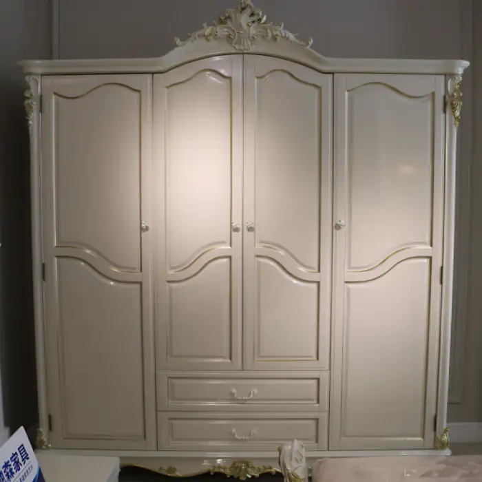 The design is French-inspired, combining timeless elegance with practical functionality to enhance any bedroom decor.