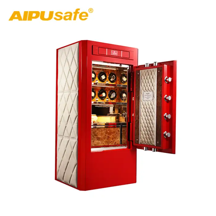 The safe includes a high security IC chip key lock, password or fingerprint access, a motion-sensitive alarm, and is compliant with Chinese national security standards.