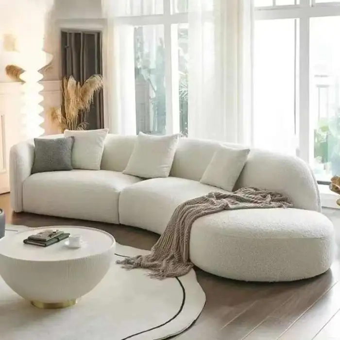 This listing highlights a cashmere white finish. The specifications reference multiple fabric terms (boucle, microfiber, flannel), so additional colors or fabric variants may be available — contact the seller to confirm customization or color options.