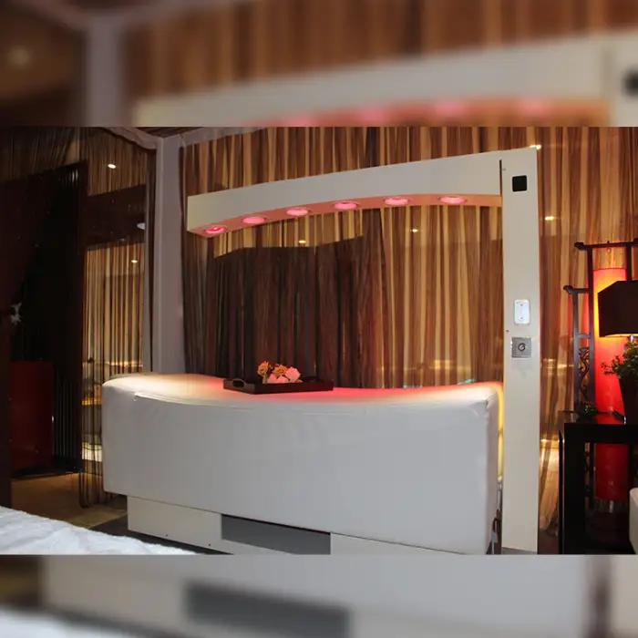 The bed features electric operation with constant temperature control, ensuring a comfortable and relaxing experience for clients.