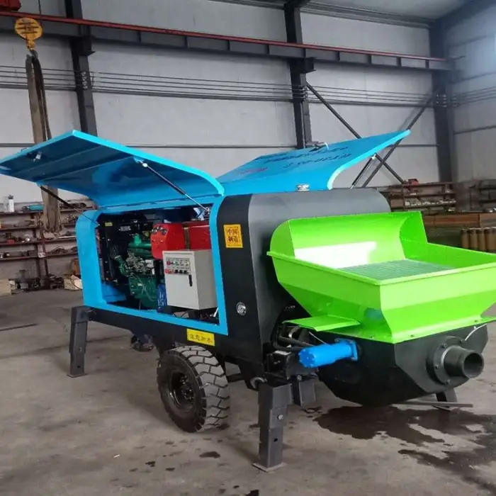 The LUZUN Mini Trailer Cement Delivery Pump is built with durable core components including a motor, pump, and engine.