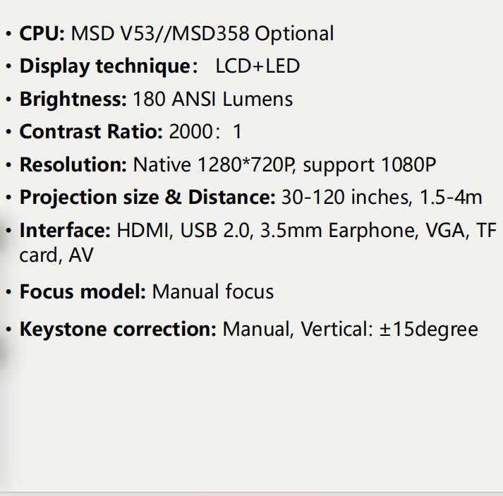 M8G RTS Lcd Led Video Portable Home theater Projector