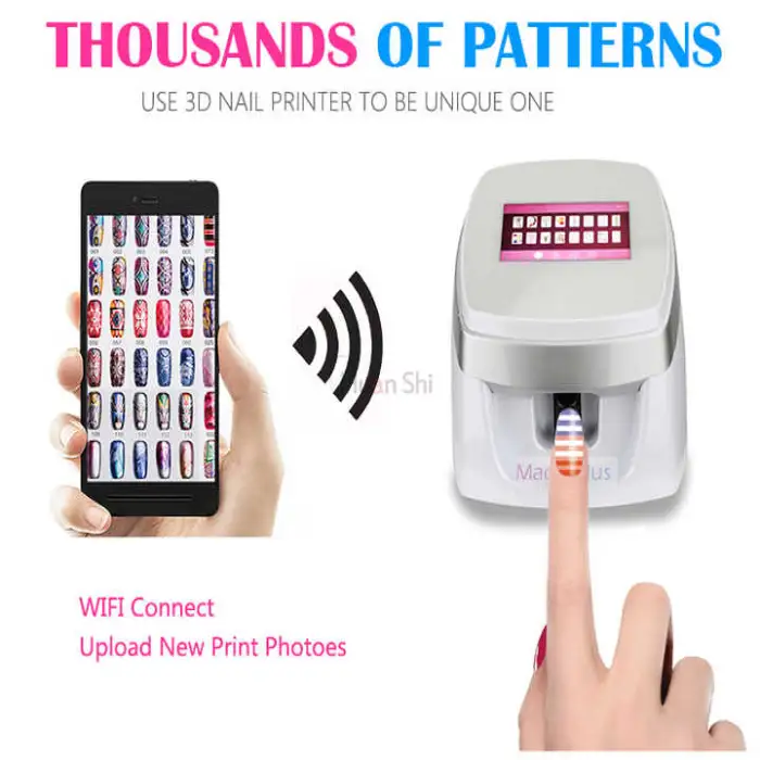 The Magic 3D Digital Nail Art Printer is a beauty machine designed to create stunning 3D nail art designs quickly and easily, ideal for nail salons and personal use.