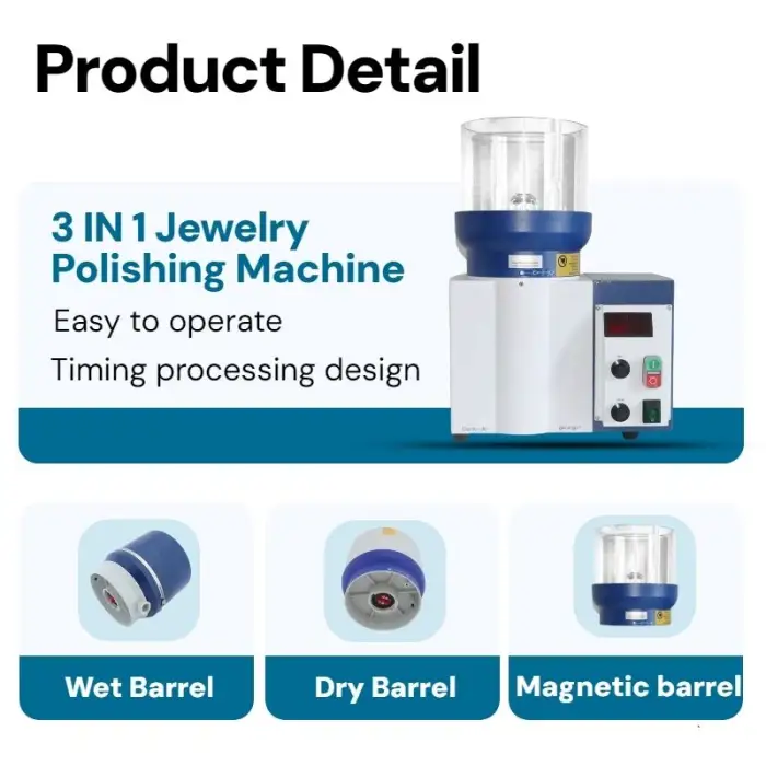 The machine offers three main functions: polishing, grinding, and finishing, making it versatile for various jewelry tasks.