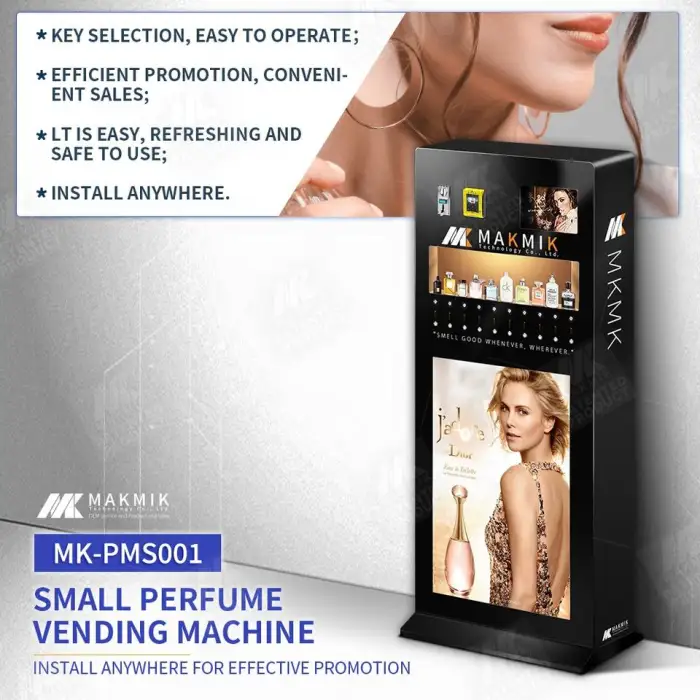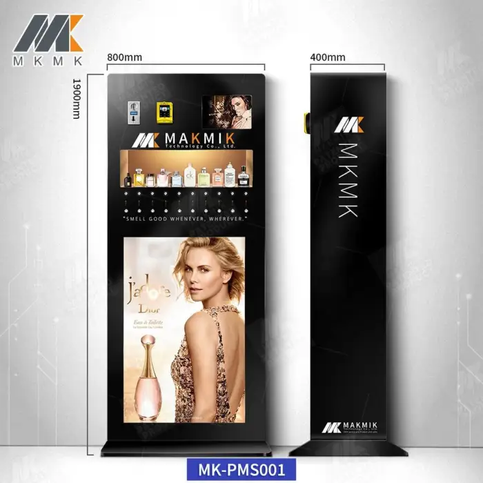 The MAKMIK vending machine measures 80X50X196 CM and weighs 120 KG.