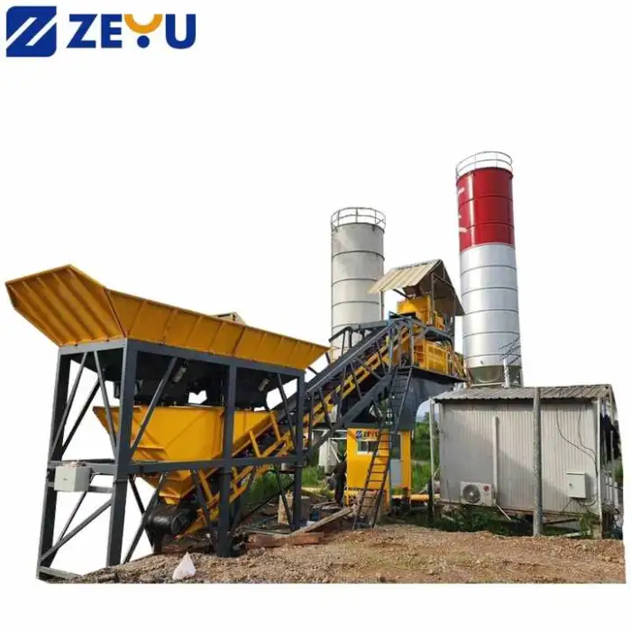 The portable concrete batching station has a production capacity ranging from 35 cubic meters per hour (M3/H) to 120 cubic meters per hour (M3/H).