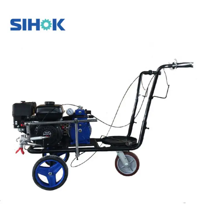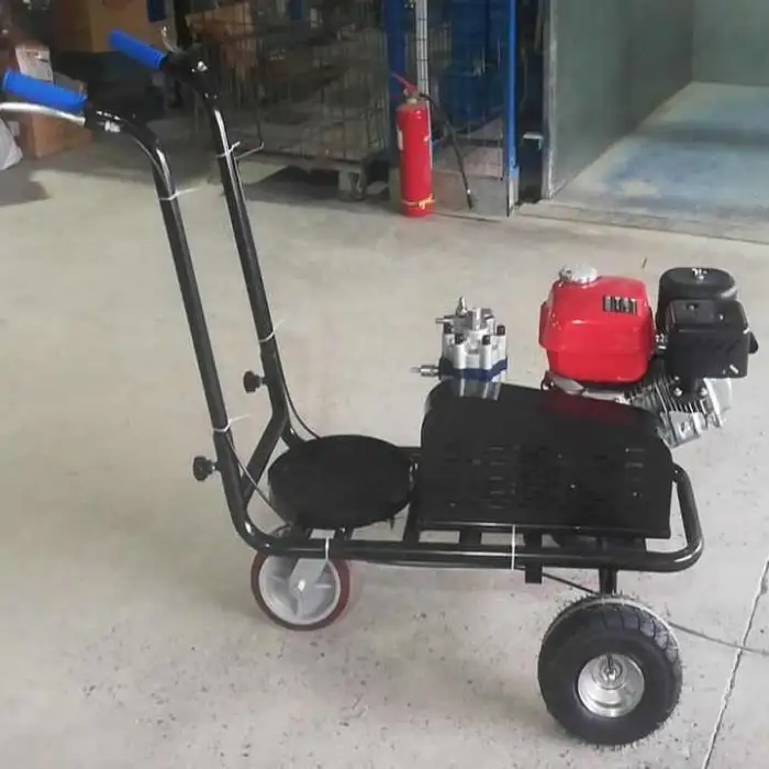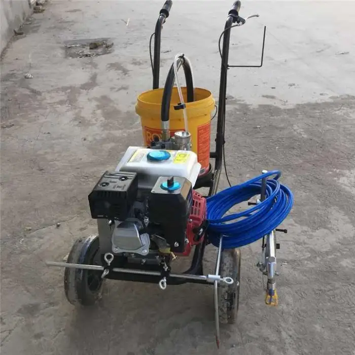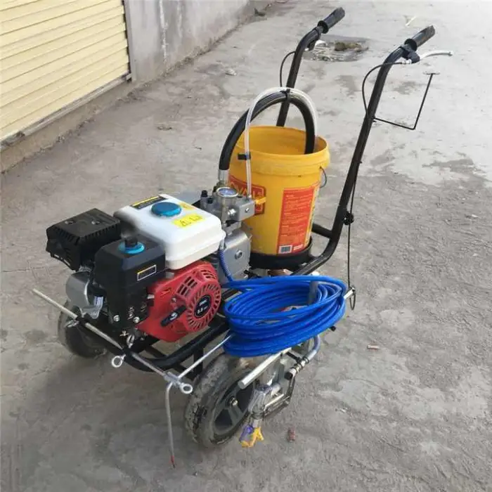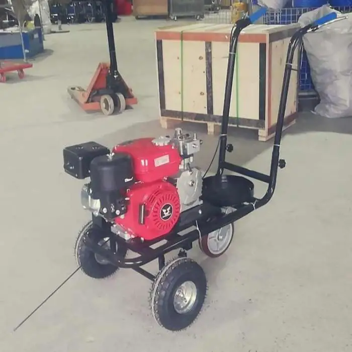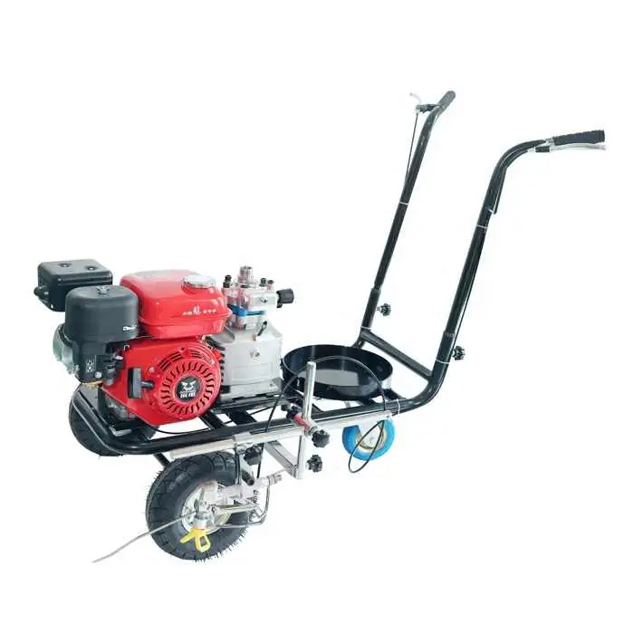 The Manufacturer Hand Push Type Parking Lot Striping Machine is powered by a gasoline engine with a power output of 5.5Hp.