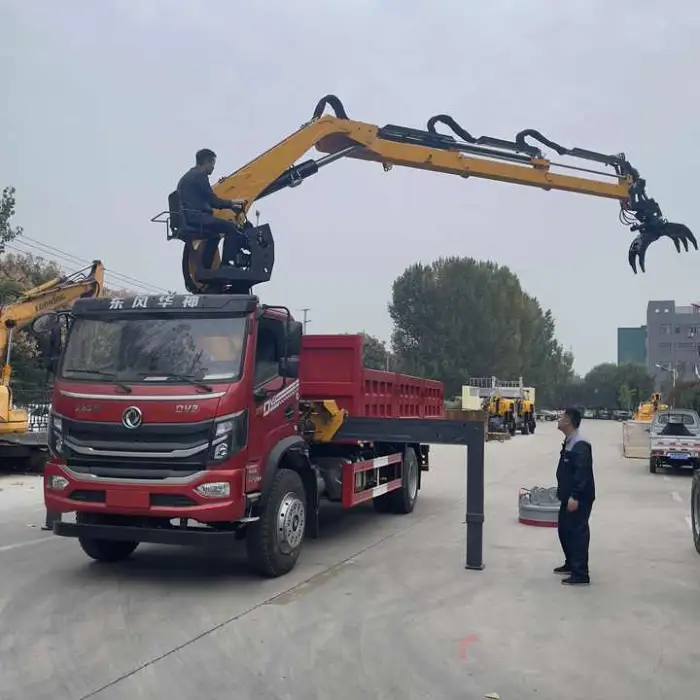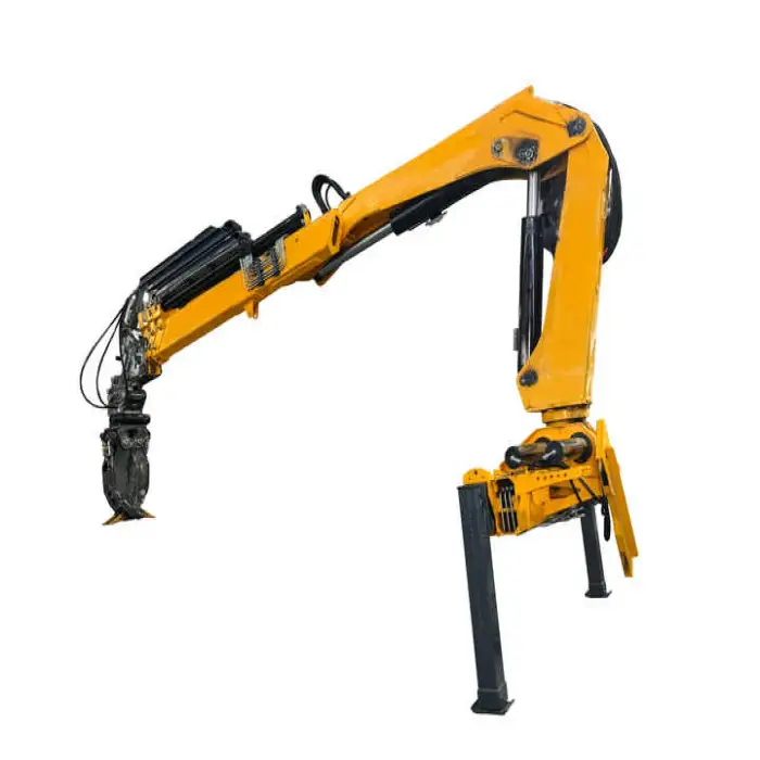 The grab crane is designed for easy lifting and transporting of timber, making loading and unloading simple.