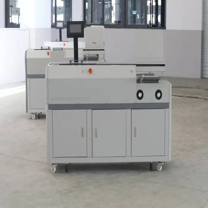 This binding machine can bind between 200 to 400 books per hour, depending on the binding thickness and paper size.
