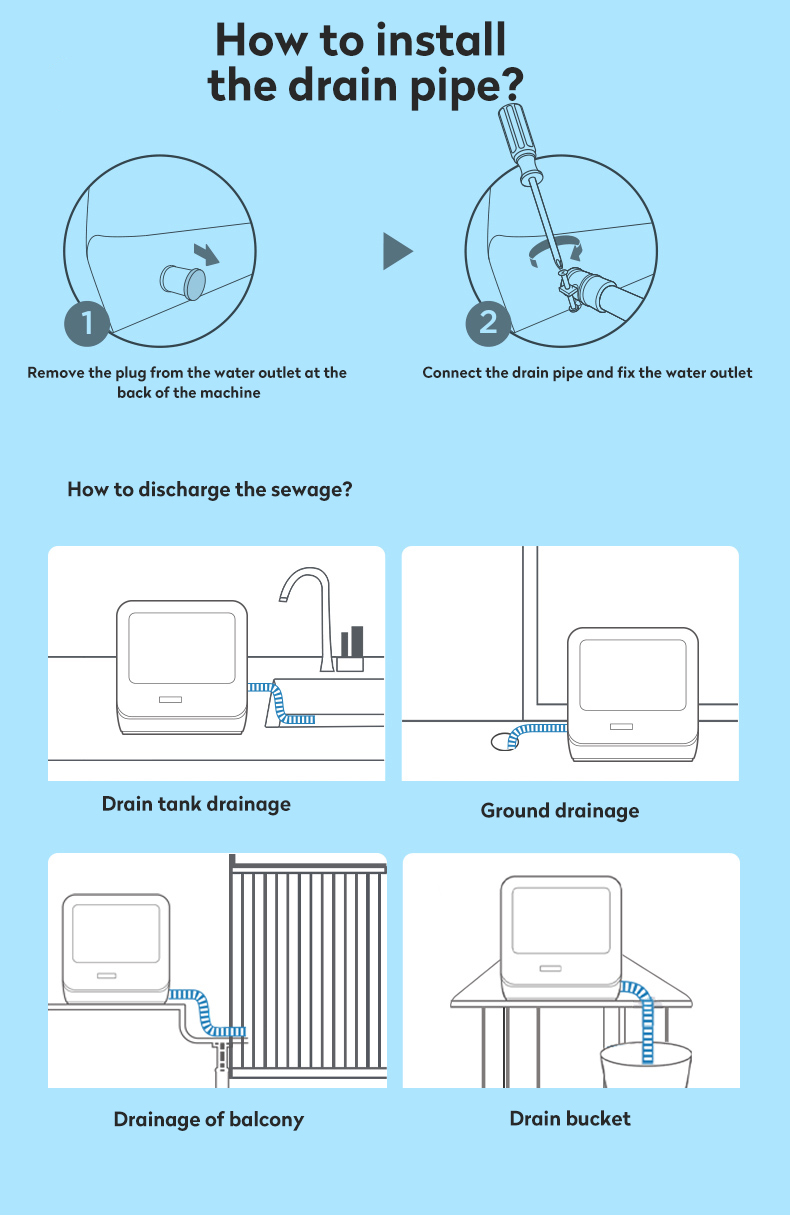 The Maxky Mini requires access to a water supply and a drain. It can be connected to a standard kitchen faucet or sink drain using compatible inlet/drain hoses and adapters. Availability of included hoses/adapters may vary—confirm with the retailer or check the product manual.