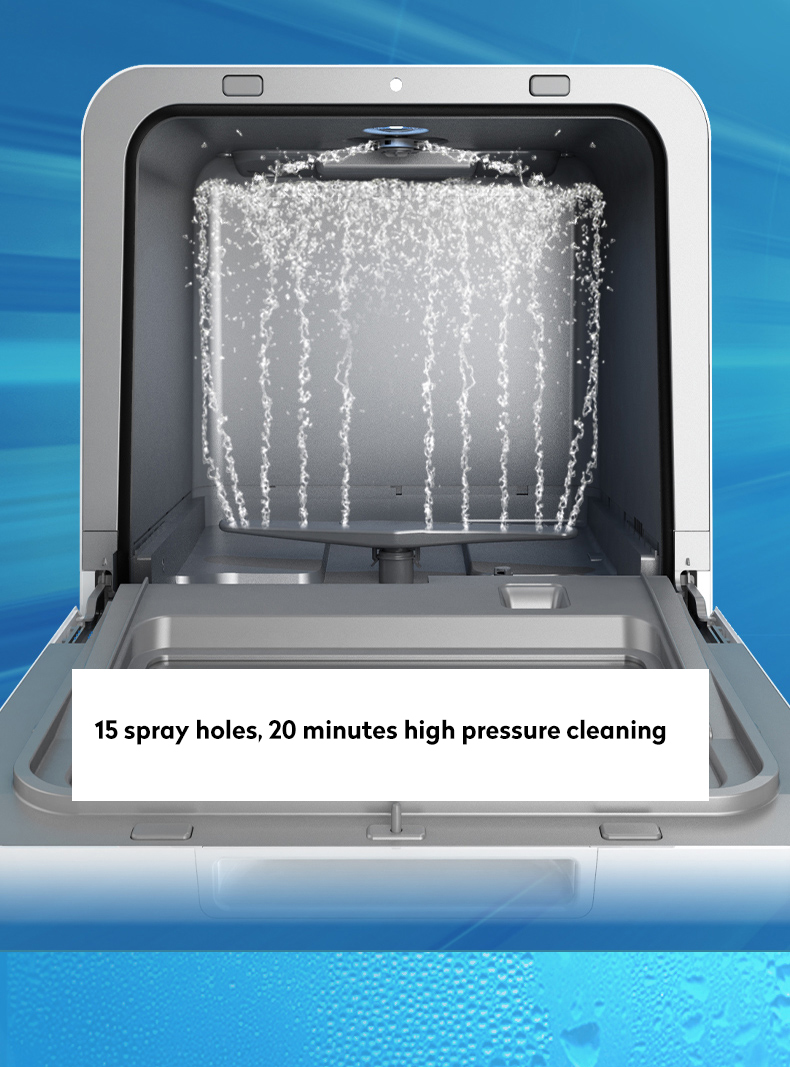 The Maxky Mini is designed for small loads and countertop use. It’s best suited to light daily loads—plates, cups, bowls, and cutlery—typical use is roughly equivalent to a few place settings. For exact capacity guidance, refer to the user manual.