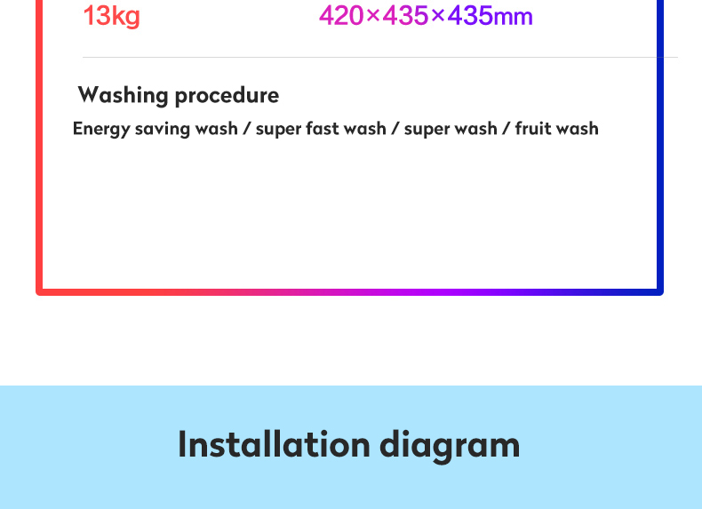 The unit measures 435 x 420 x 435 mm. Packed size is 532 x 552 x 558 mm. Gross weight is about 17 kg and net weight about 14.5 kg.