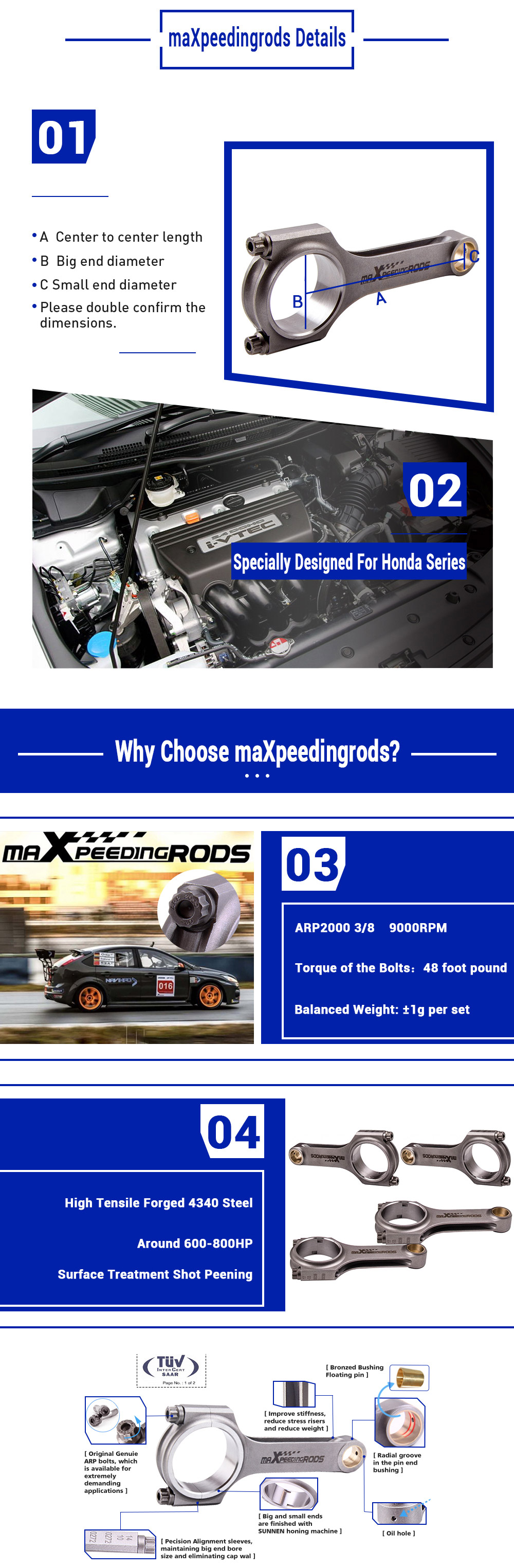 TüV certification indicates that these connecting rods meet strict safety and quality standards recognized in Europe.