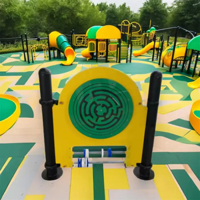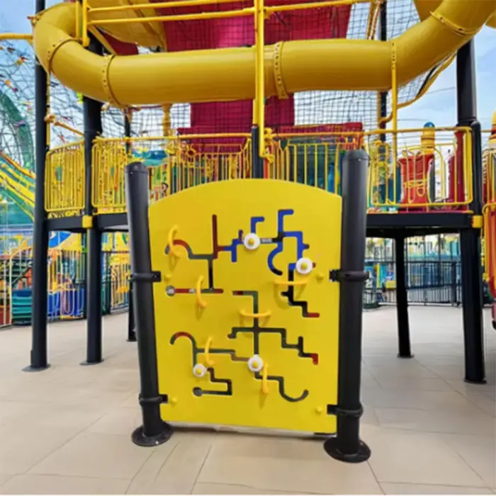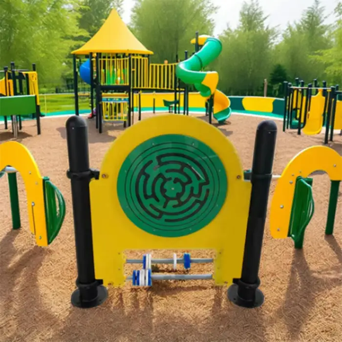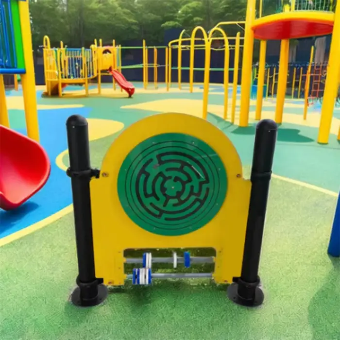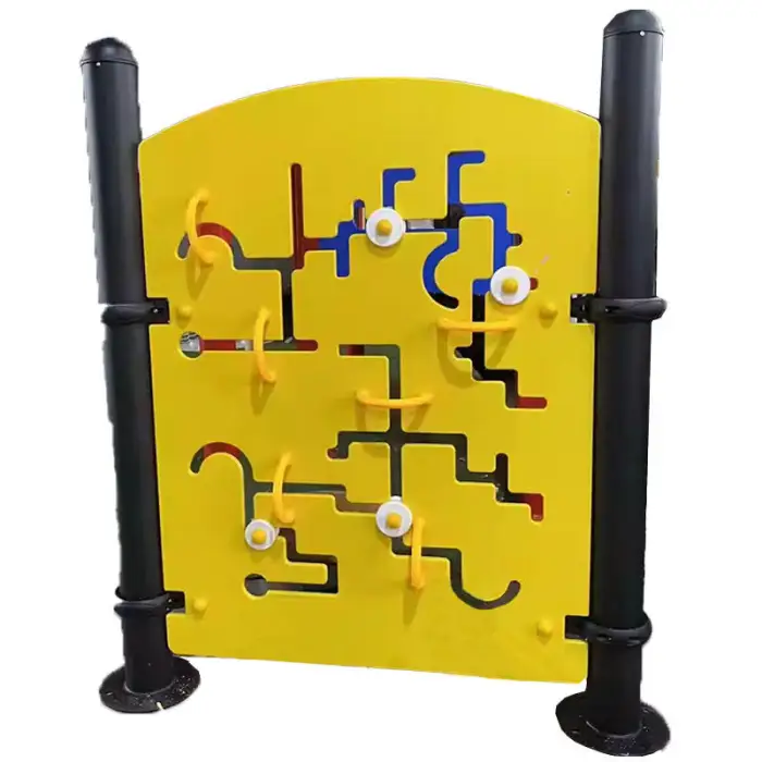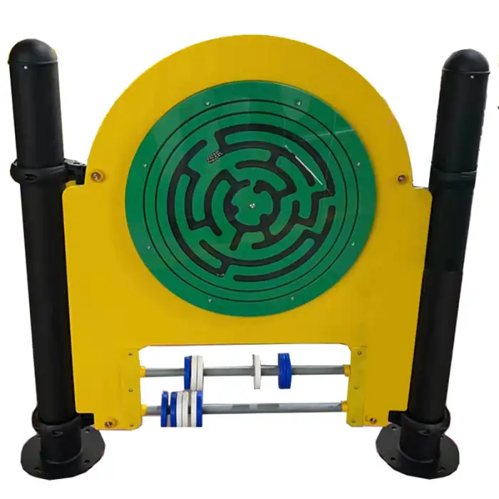 The Maze Wheel is made of durable metal, ensuring a sturdy and safe play structure for children.
