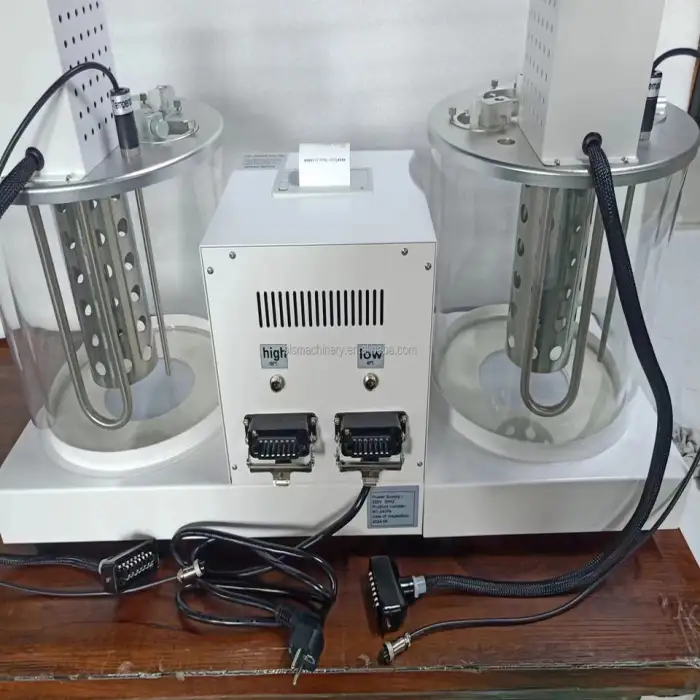 The Measuring Equipment for Lubrication Oils is available in voltage options of 220 V, 240 V, and 110 V, accommodating different electrical standards.