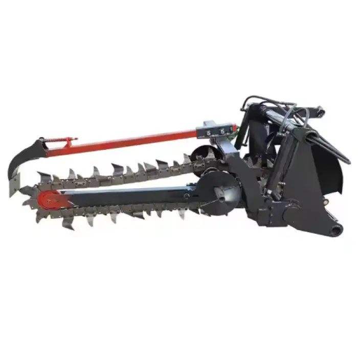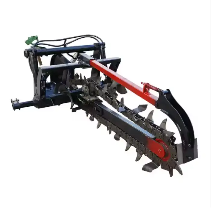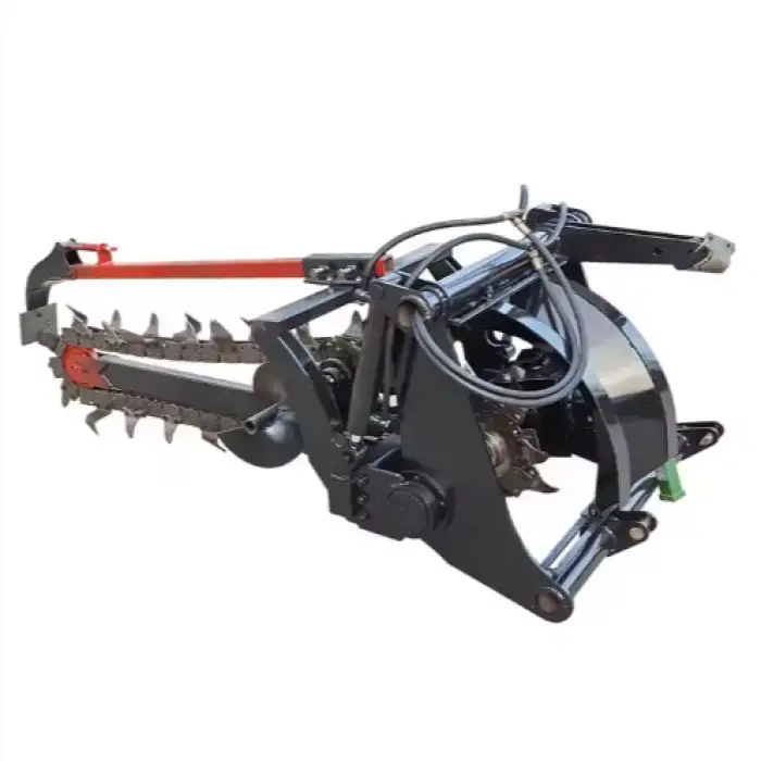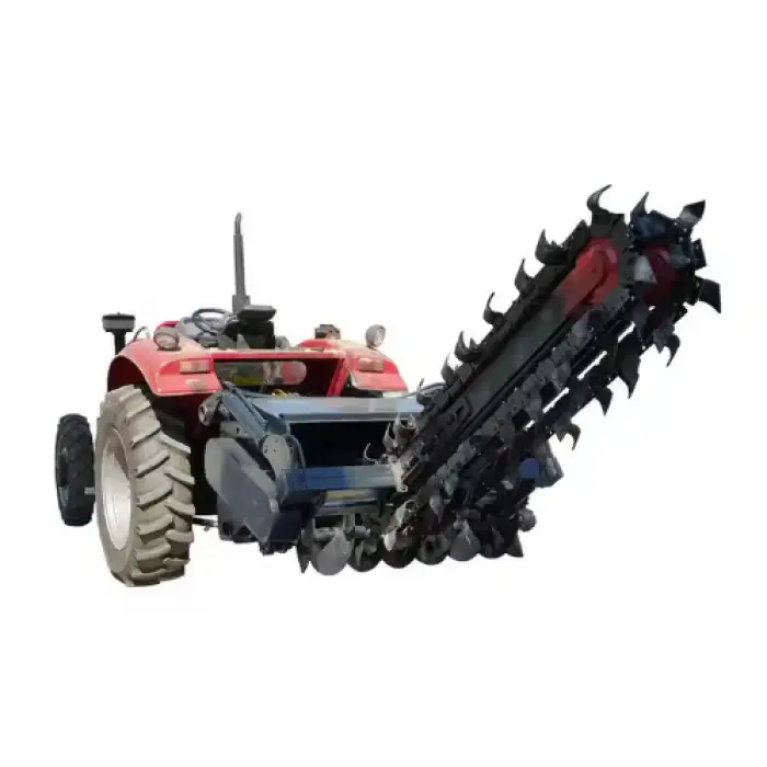 This trenching machine is primarily used for creating ditches for cables, digging trenches for orchard roadways, and other outdoor applications.