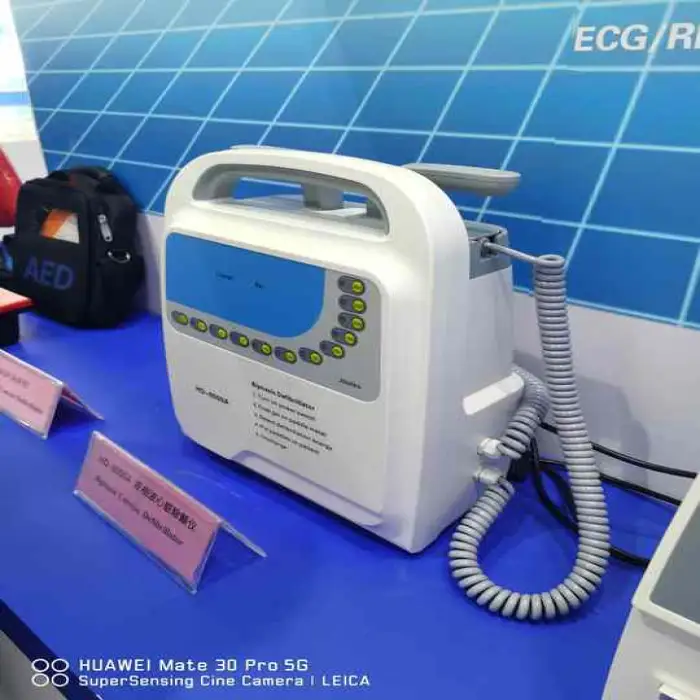 The defibrillator is packaged in a single package size of 100 x 20 x 30 cm, with a gross weight of 50.000 kg, ensuring safe transport.