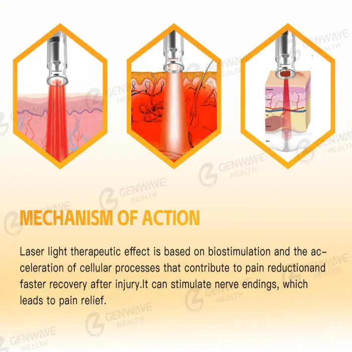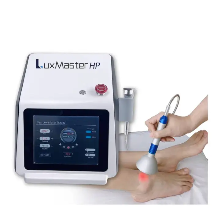 This machine uses advanced fiber diode laser technology, which is effective for pain relief and healing.