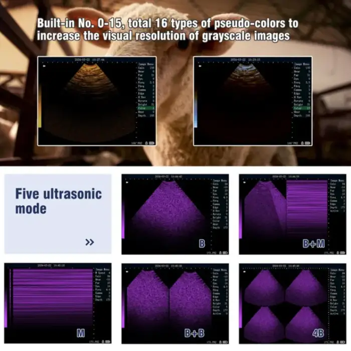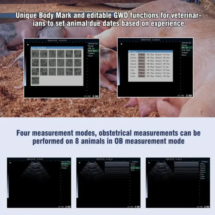 It can perform routine measurements, backfat measurements, cardiac measurements, and obstetric measurements.