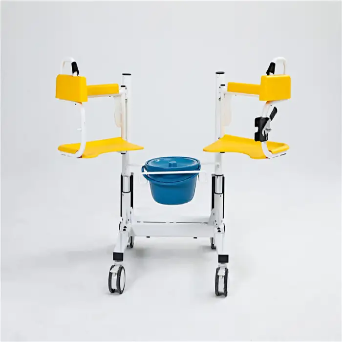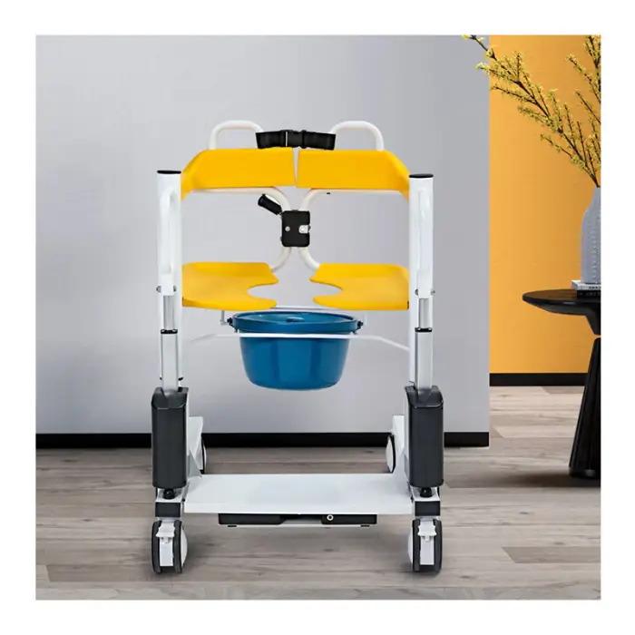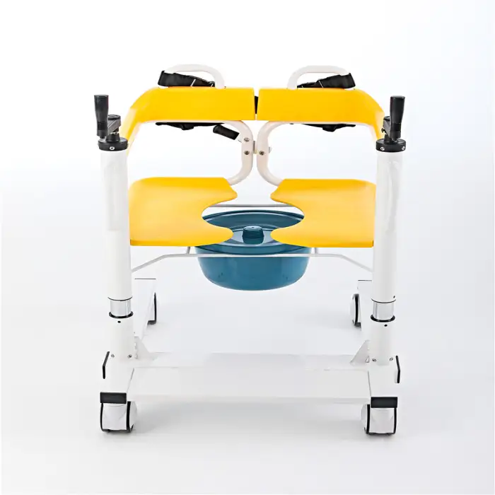 The Medical Transfer Lift Commode is made from durable ABS material, which is lightweight and built for long-lasting use.