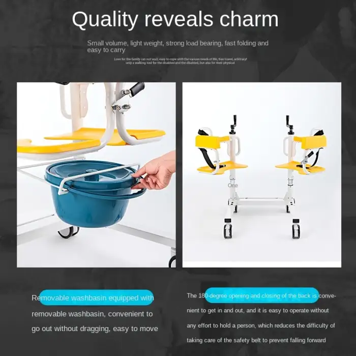 This chair is ideal for individuals needing assistance with toilet use, bathing, personal hygiene, and rehabilitation therapy.